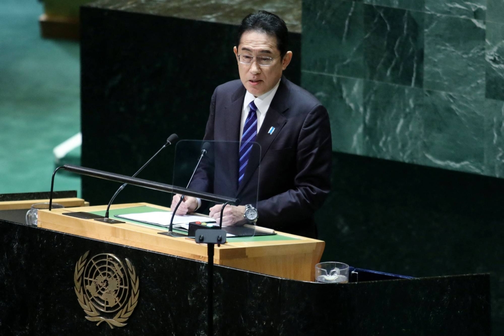 Speaking Tuesday evening at the U.N. General Assembly in New York, Kishida said Japan will work together with other countries and the United Nations to facilitate discussions between nuclear and nonnuclear weapon states.