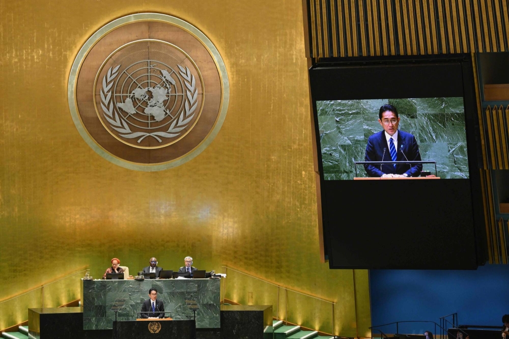 In his second address to the General Assembly since he took office in October 2021, Kishida alluded to the increasing dysfunction of the U.N. Security Council caused by Moscow's vetoing power. Russia is one of the five permanent members.