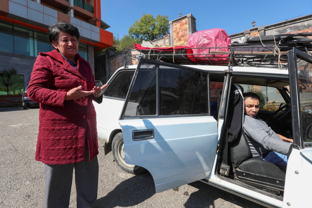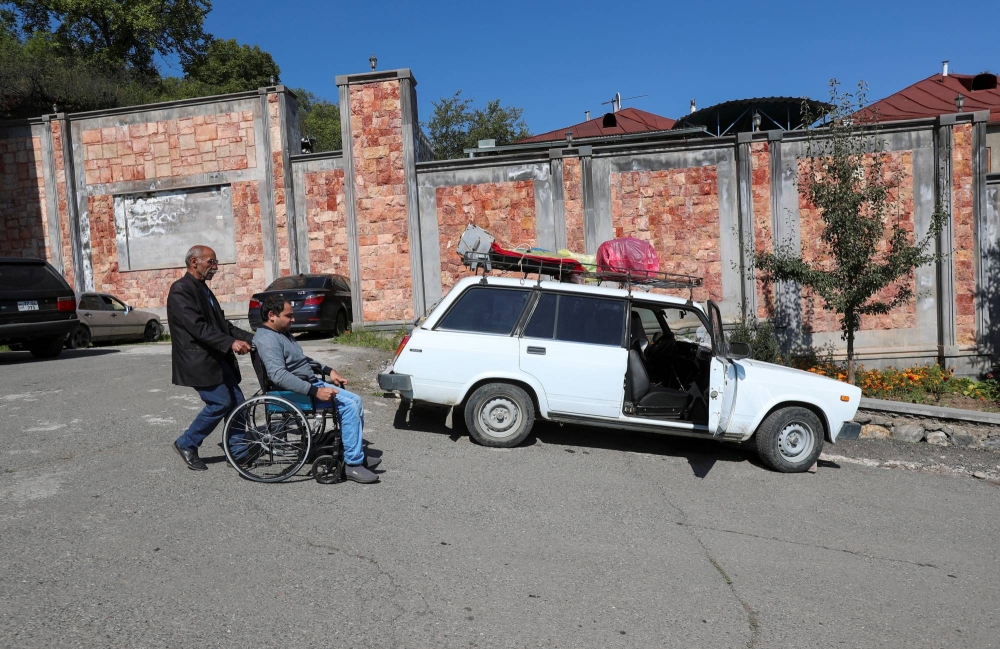 Albert Petrosyan strapped his son's wheelchair and a few bags to the roof of his ancient Russian-made car ahead of another long drive after fleeing his home in Nagorno-Karabakh this week and spending just one night in a hotel in this Armenian town.