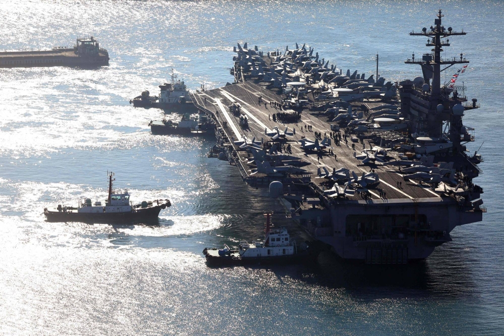 South Korea said the arrival of the Vinson — the third aircraft carrier to visit the country this year — demonstrated Washington and Seoul’s “firm resolve to respond to advancing North Korean nuclear and missile threats.”
