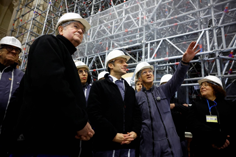 President Emmanuel Macron of France was in the heart of Paris on Friday to check on the progress of the restoration of an 860-year-old limestone landmark: Notre Dame Cathedral, whose familiar silhouette is rising once again on the skyline of the French capital.