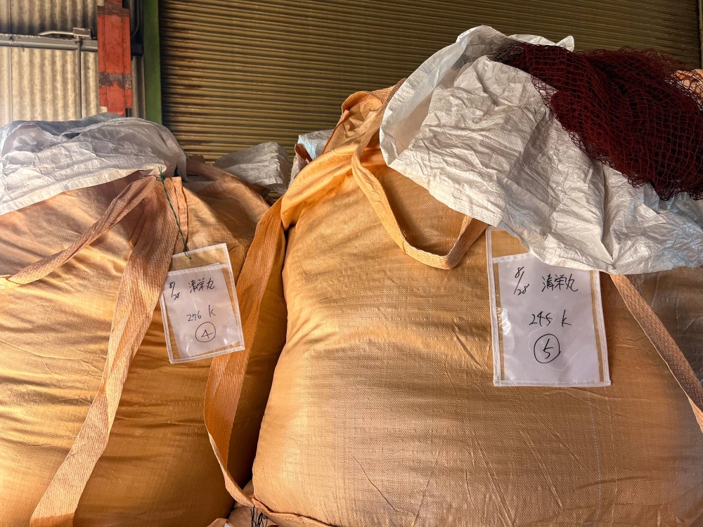 This may not seem like much, but nets can be quite heavy — Seki picks up hundreds or even thousands of kilograms from his partnering fisheries at a time. For example, one large bag of fish nets stored in Ellange's storage weighs around 300 kg, which would could cost upward of ¥30,000 to recycle, and Seki usually recieves three or even four of these bags per pick up.