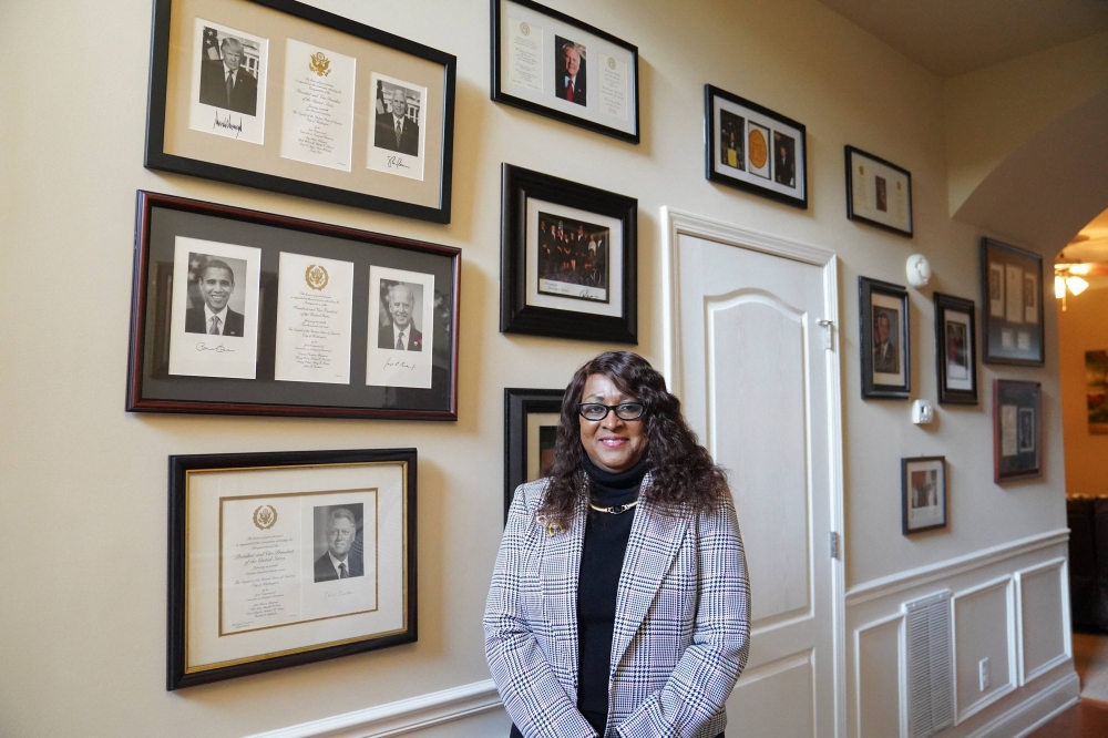 With talk of compromise and civility, Moore sounds like a Republican from another era. The hallway of her home is adorned with pictures of presidents from both parties, including a framed invitation to former Democratic President Barack Obama's 2009 inauguration, which she attended as a member of the Georgia Republican Party's executive committee.