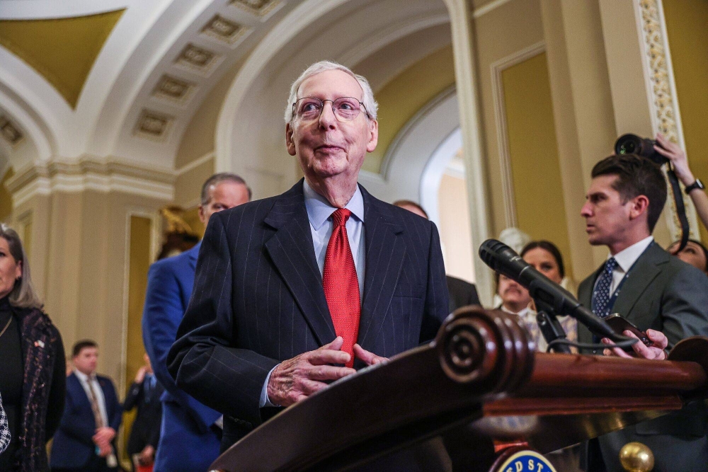 McConnell endorsed moving forward with emergency funding for Ukraine, Israel and Taiwan and said Senate Majority Leader Chuck Schumer would have to decide how to repackage the deal.