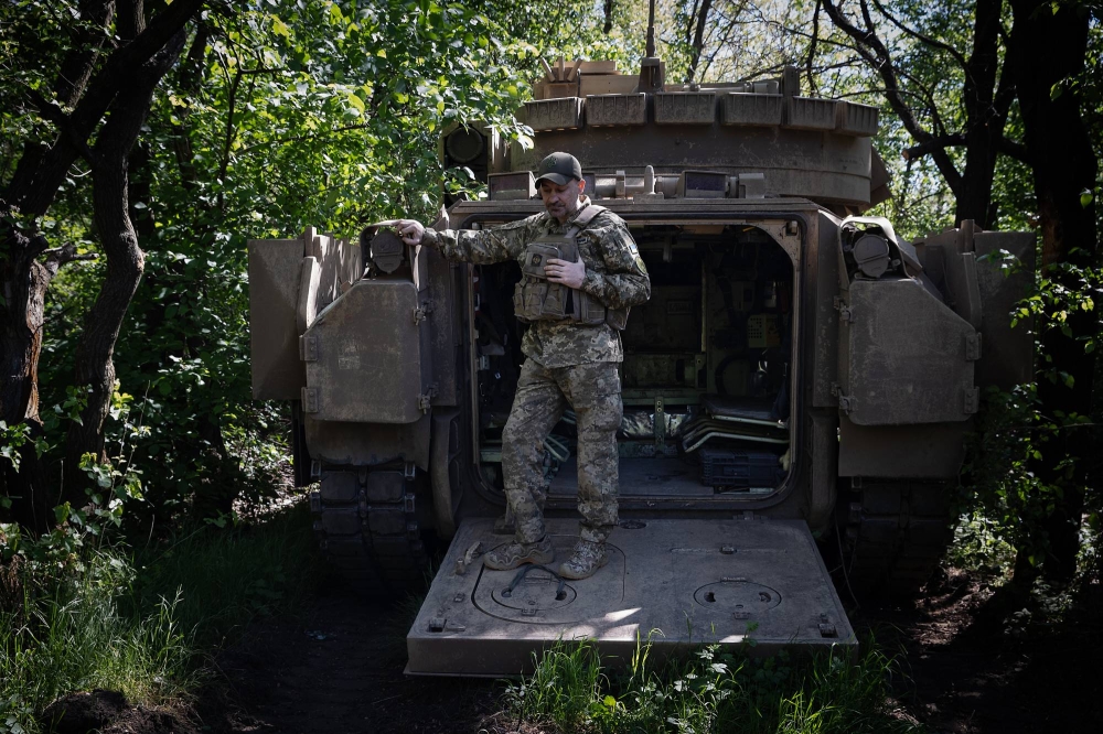 Thunderous explosions shook the ground as the Ukrainian crew prepared to maneuver its American-made Bradley Fighting Vehicle out of camouflage and, once again, into the fire.