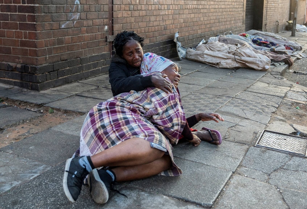 On the day after the fire, as dozens of shell-shocked and homeless survivors sat outside the building, about 30 members of Dudula arrived armed with whips, marched up and began taunting them, according to five witnesses and five affidavits.