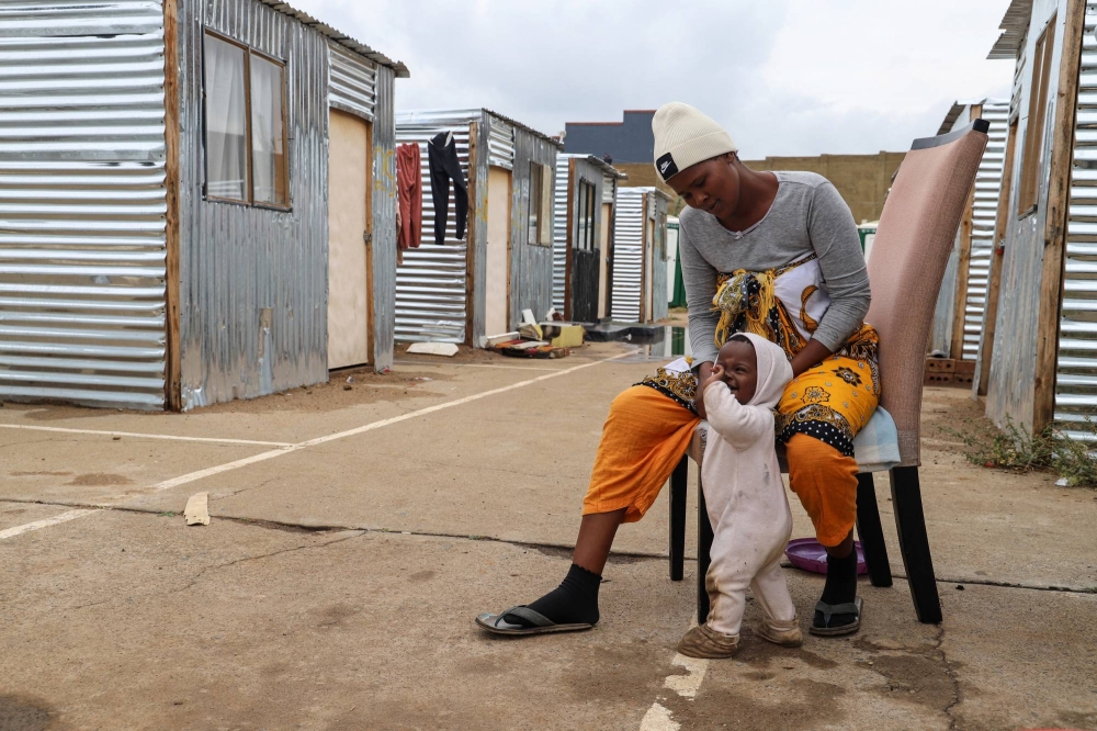 "We had financial problems; it was cheap," Mokgoko said outside the tin shack where she now resides. Her 1-year-old daughter, Mymuna, giggled as she muddied her pink booties in the dirt.