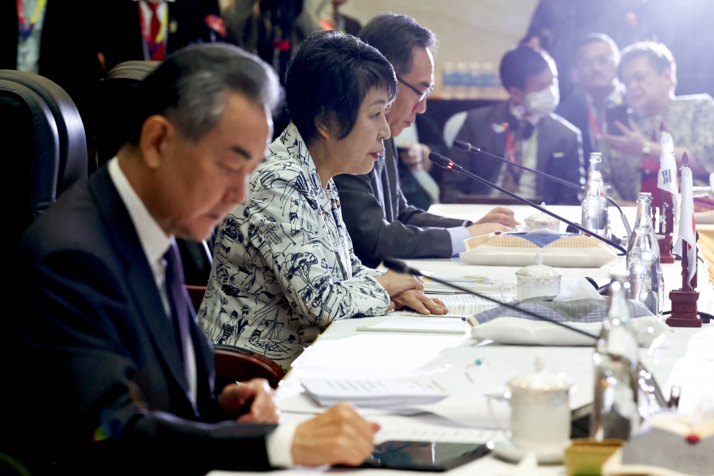 Wang met Japan's Yoko Kamikawa on the sidelines of a gathering of foreign ministers hosted by the Association of Southeast Asian Nations in Laos, ahead of Saturday's East Asia Summit and the security-focused ASEAN Regional Forum.