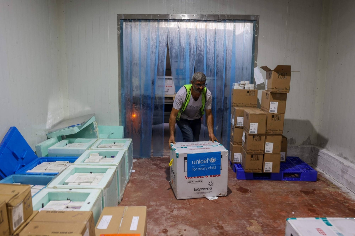 The Israeli military's humanitarian unit said on Wednesday that the vaccination campaign would be conducted in coordination with the Israeli military "as part of the routine humanitarian pauses that will allow the population to reach the medical centers where the vaccinations will be administered."