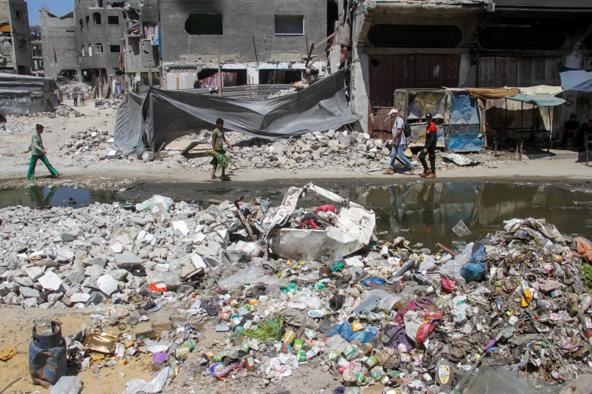 But even as crowds gathered in the southern cities of Rafah and Khan Younis for vaccinations on Sept. 5, bombs continued to fall in other areas, with Gaza health officials saying an Israeli strike killed five people at the Al-Aqsa Hospital in Deir Al-Balah.