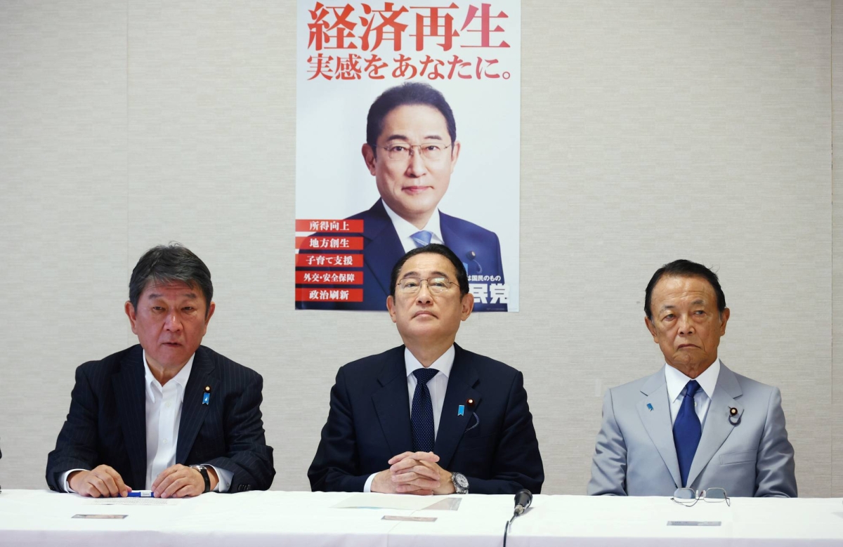 Nine candidates are running in the Sept. 27 Liberal Democratic Party presidential election, but it’s three LDP veterans acting as behind-the-scenes kingmakers whose decisions will heavily influence the result: Prime Minister Fumio Kishida, his predecessor Yoshihide Suga and LDP Vice President Taro Aso, also a former Japanese leader.