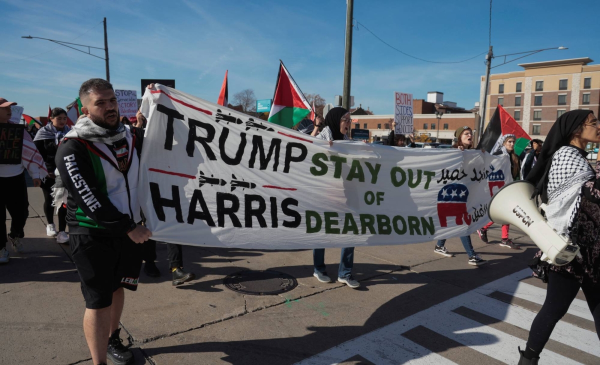 Trump visited Dearborn, Michigan, the heart of the Arab American community, on Friday and vowed to end the conflict in the Middle East without saying how.