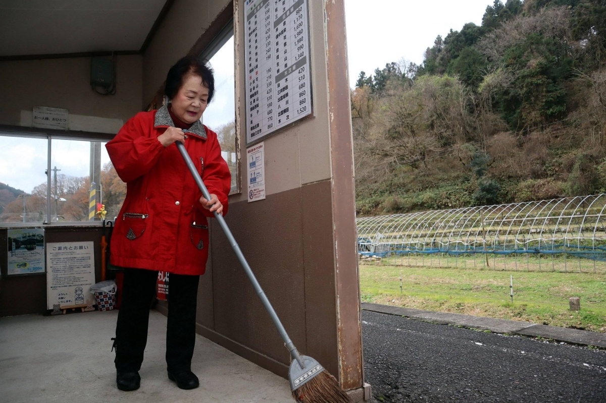 There are only 10 houses around Uchina Station. Amid the accelerating depopulation, just three of them have someone living in them. Yet Ueda takes time every day to clean the station.