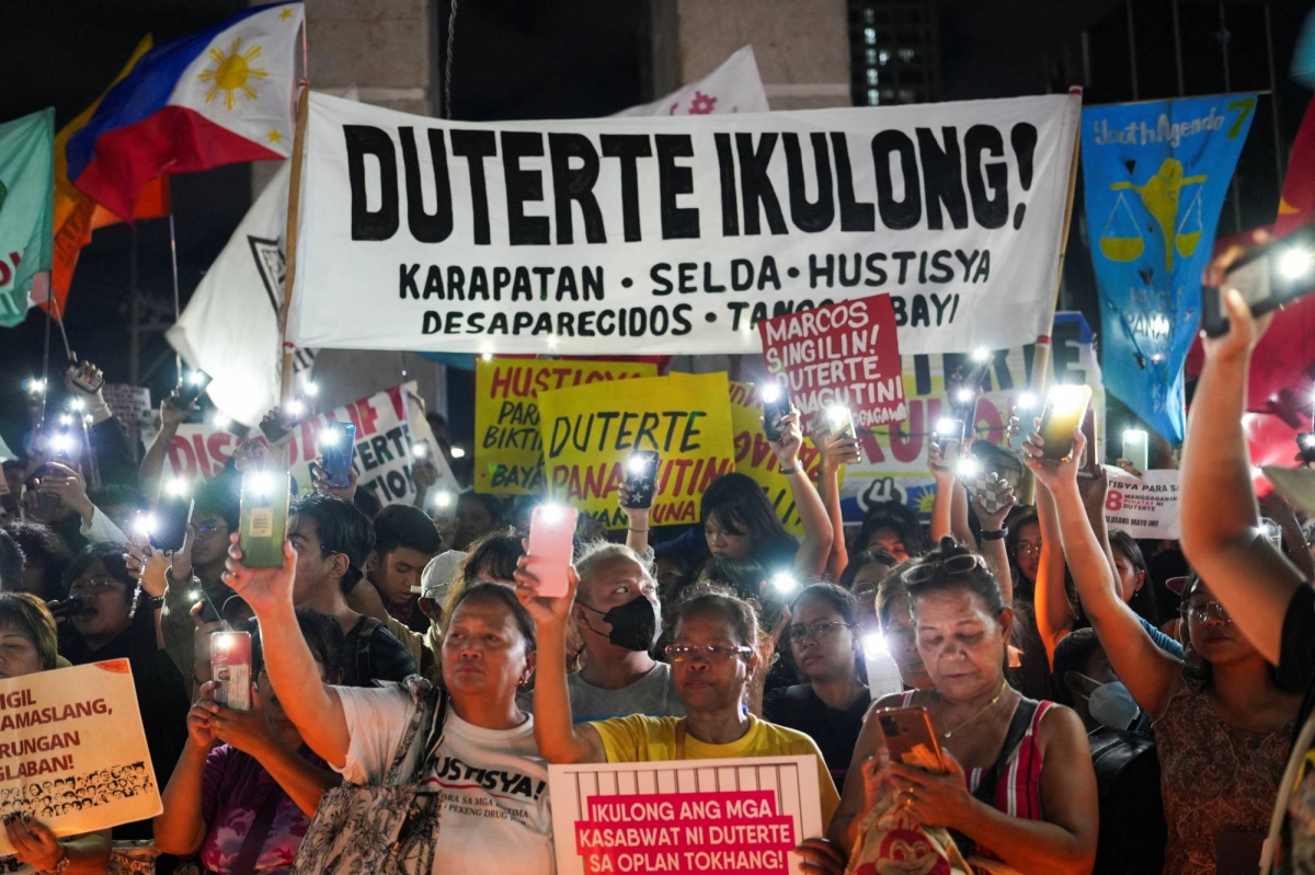 Hundreds of Duterte’s supporters held a rally and prayer vigil on Tuesday night beside the airport where the former leader was arrested. In his bailiwick region of Mindanao, thousands also gathered to protest his arrest. In Manila, human rights activists and families of those killed during the anti-drug campaign assembled to welcome the decision.