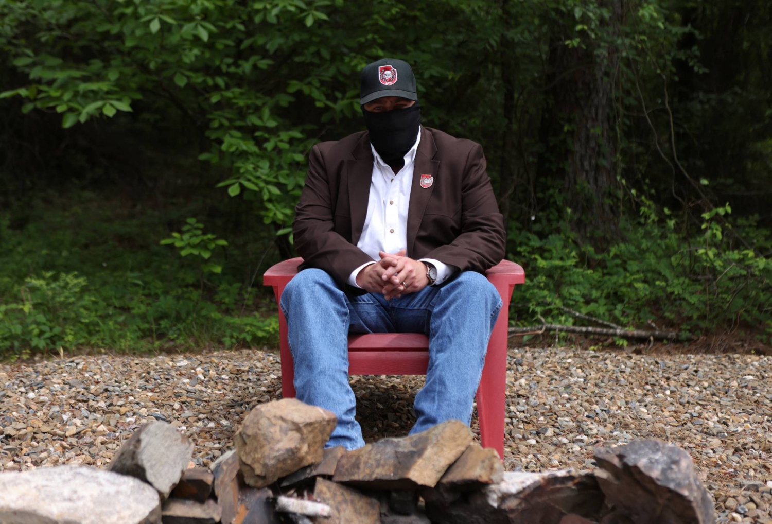 In another echo of the Klan, its signature cross burnings, swastikas are set alight at AFN gatherings. In an AFN video posted online, Stout stands on the bed of a pickup truck, masked and flanked by armed guards, arm raised in a Nazi salute.