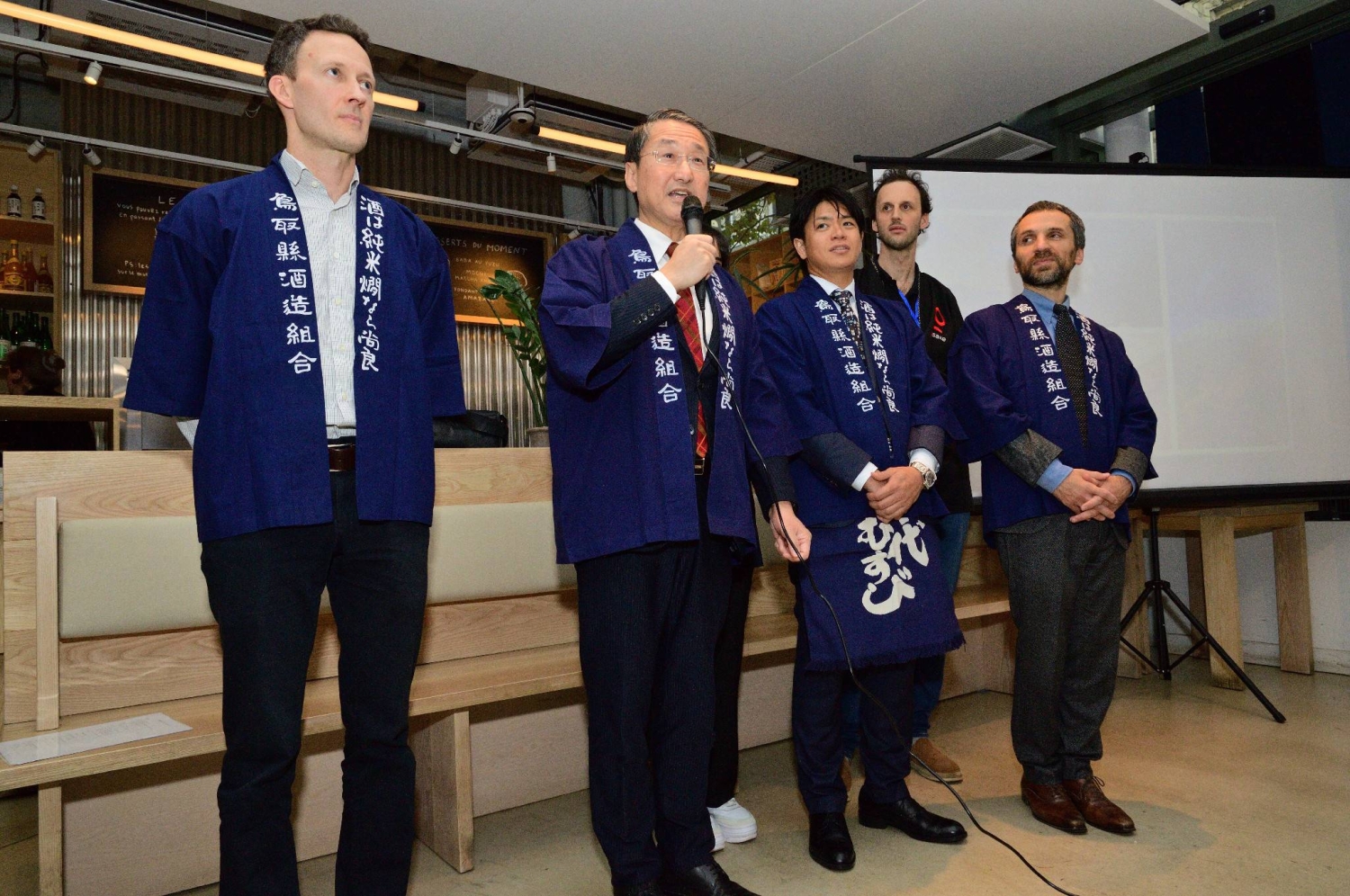 Tottori Gov. Shinji Hirai promoted sake and folk crafts from the prefecture in Paris over two days through Wednesday.