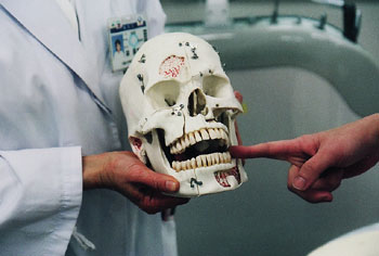 Only a few dental schools have sophisticated phantom heads, mannequins that replicate the human mouth and can be filled with healthy or decayed teeth, and yell "ouch" if a student touches a sensitive place. Students in their final years can treat live patients, but only with the patient's permission, which is mostly refused. Momoi says that at Tsurumi only 10 percent of the patients consent. Hayashi notes that patients are much more reluctant than 10 years ago to allow students to treat them.