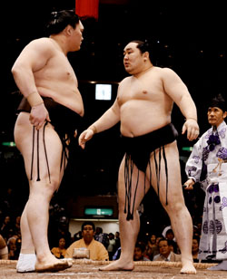 However, instead of being the sole recipient of domestic and global media attention, he has to contend for column inches with sumo bad boy Asashoryu, the reigning yokozuna and winner of 22 Emperor's Cups.