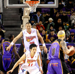 Starting center Sun Ming Ming is 236 cm and 160 kg and considered the world's tallest basketball player.