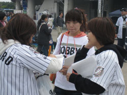 While the Valentine and the Marines were inside preparing to face Seibu, Sato and his group were outside of Marine Stadium, soliciting signatures from fellow fans who also want Valentine around next season.