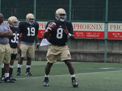The fire and intensity that made former Notre Dame head coach Holtz a legend was out in full force on a rainy Tuesday afternoon at Nihon Daigaku as a group of Fighting Irish alums prepared for their upcoming game against the Japanese senior national team.