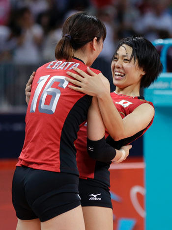 Asked whether the success of the Japan volleyball team can lead to increased popularity for the sport, Takeshita responded by saying, "I know that other sports are charming and popular. I recognize that, but (for volleyball) to get more popular, we are doing our best."