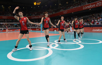 Japan played to its strengths throughout the match, relying on scrappy defense — digging the ball after the Koreans' returns — instead of trying to force the issue at the net by blocking the ball. Japan, in fact, finished with zero blocks in the 1-hour, 23-minute match.