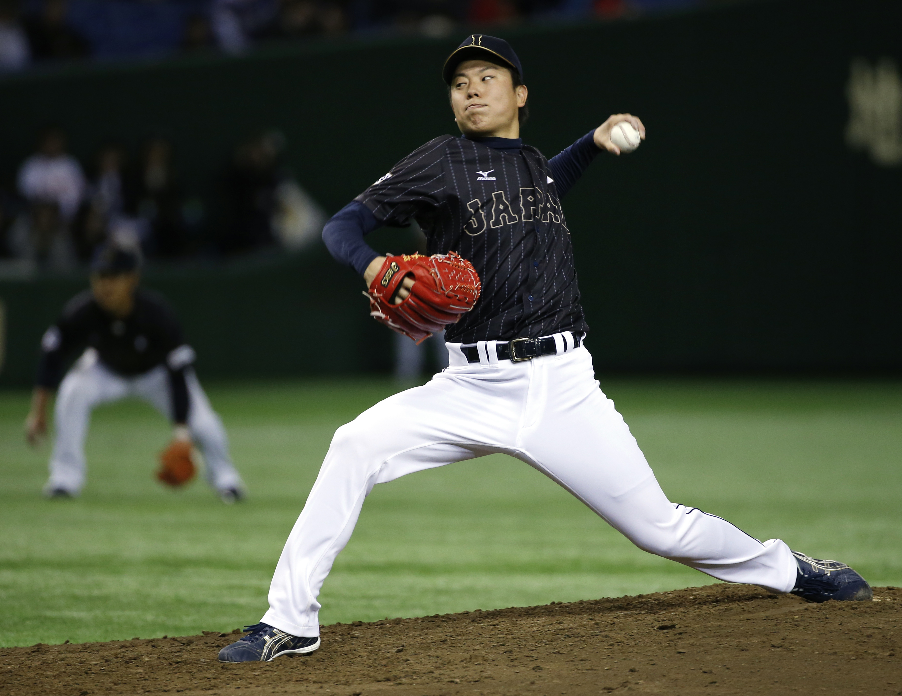 Japan starter Matsuba had a long night, departing after allowing five runs.