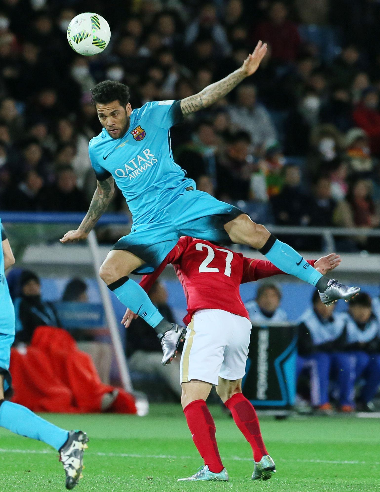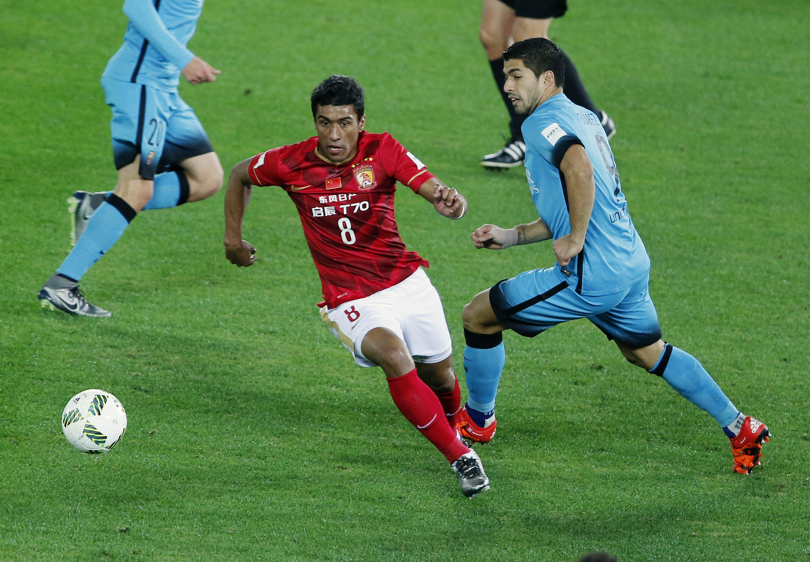 A 16th-minute foul on Suarez on the edge of the Guangzhou box gave Barcelona its first real chance of the game, only for Croatian midfielder Ivan Rakitic to cannon his shot into the Chinese wall.