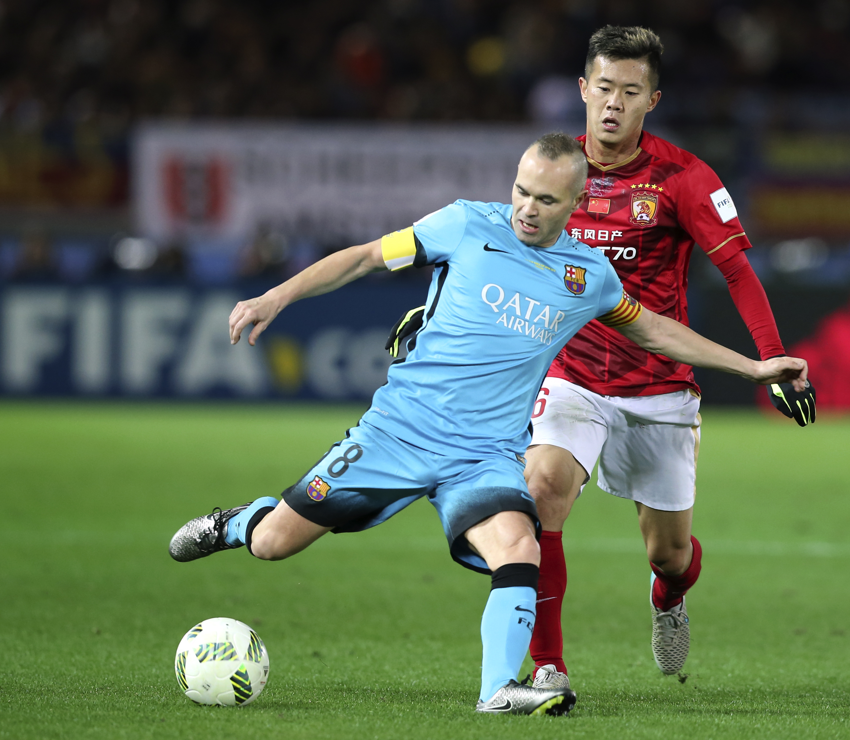 Guangzhou goalkeeper Li Shuai then denied Munir El Haddadi from close range after a defense-splitting pass from Andres Iniesta, before Munir headed just wide of the post in the 31st minute.