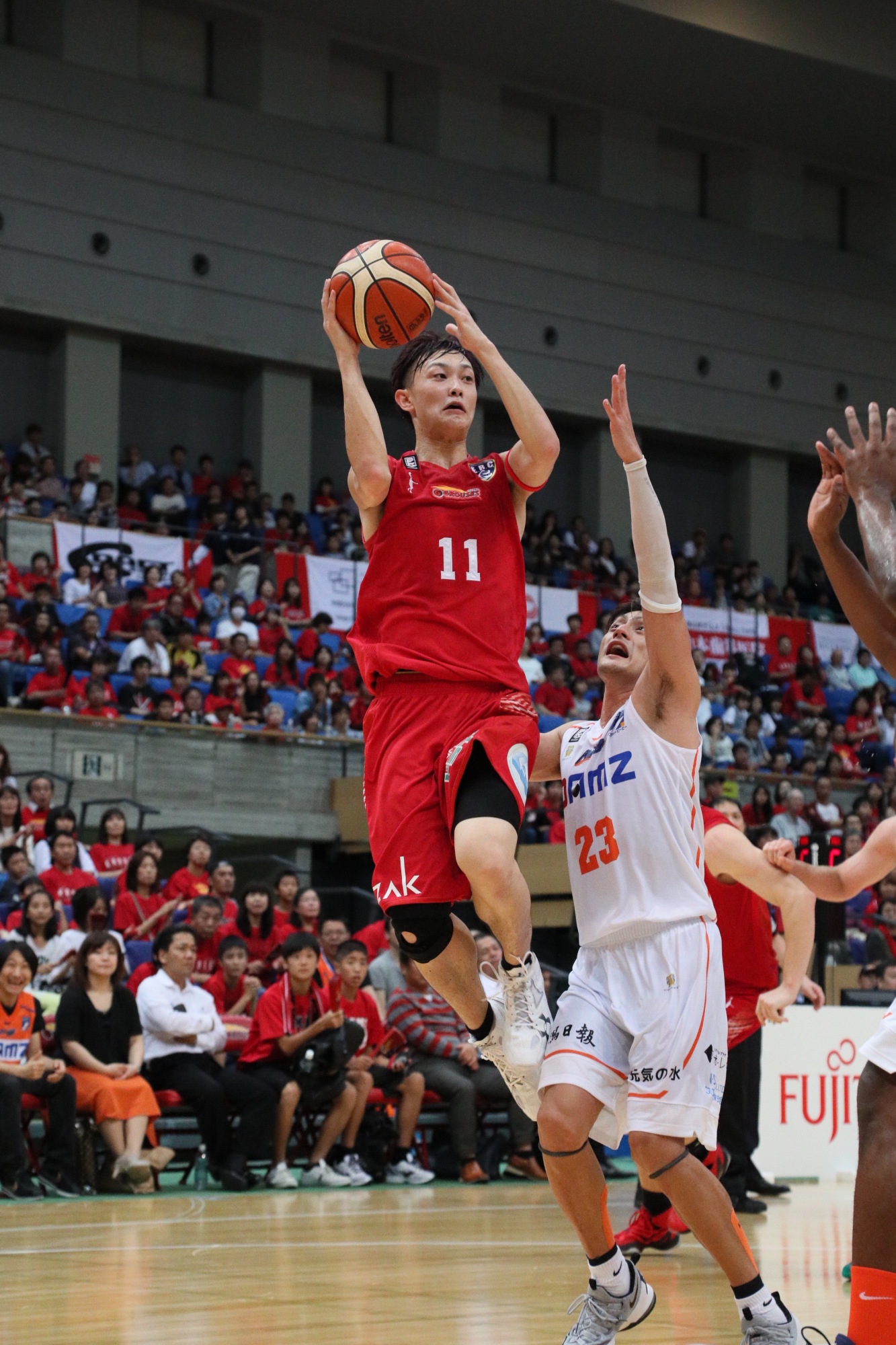 As an established star who helped turning the Grouses into a perennial playoff team after joining Toyama in 2011, former bj-league MVP Masashi Joho remains a guiding light for the club. Last Saturday, he had a brilliant performance, canning 6 of 10 3s en route to 29 points; then he had a quiet game — eight points on 2-for-11 shooting — in the rematch.
