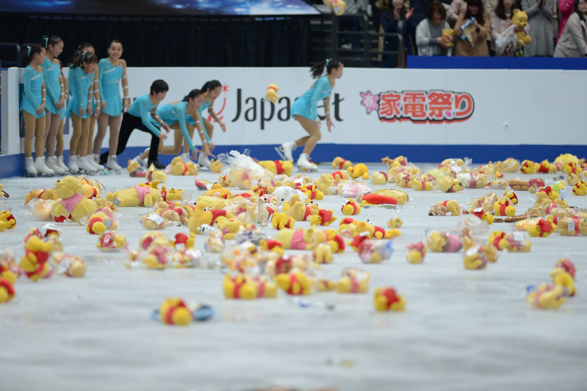 In the years and competitions that have followed, as Hanyu claimed his second Olympic gold and “Yuzu-mania” gripped the skating world, the Pooh deluges have only increased in size — with flower girls and event staff sometimes struggling to remove them from the ice in time for the next skater to compete.