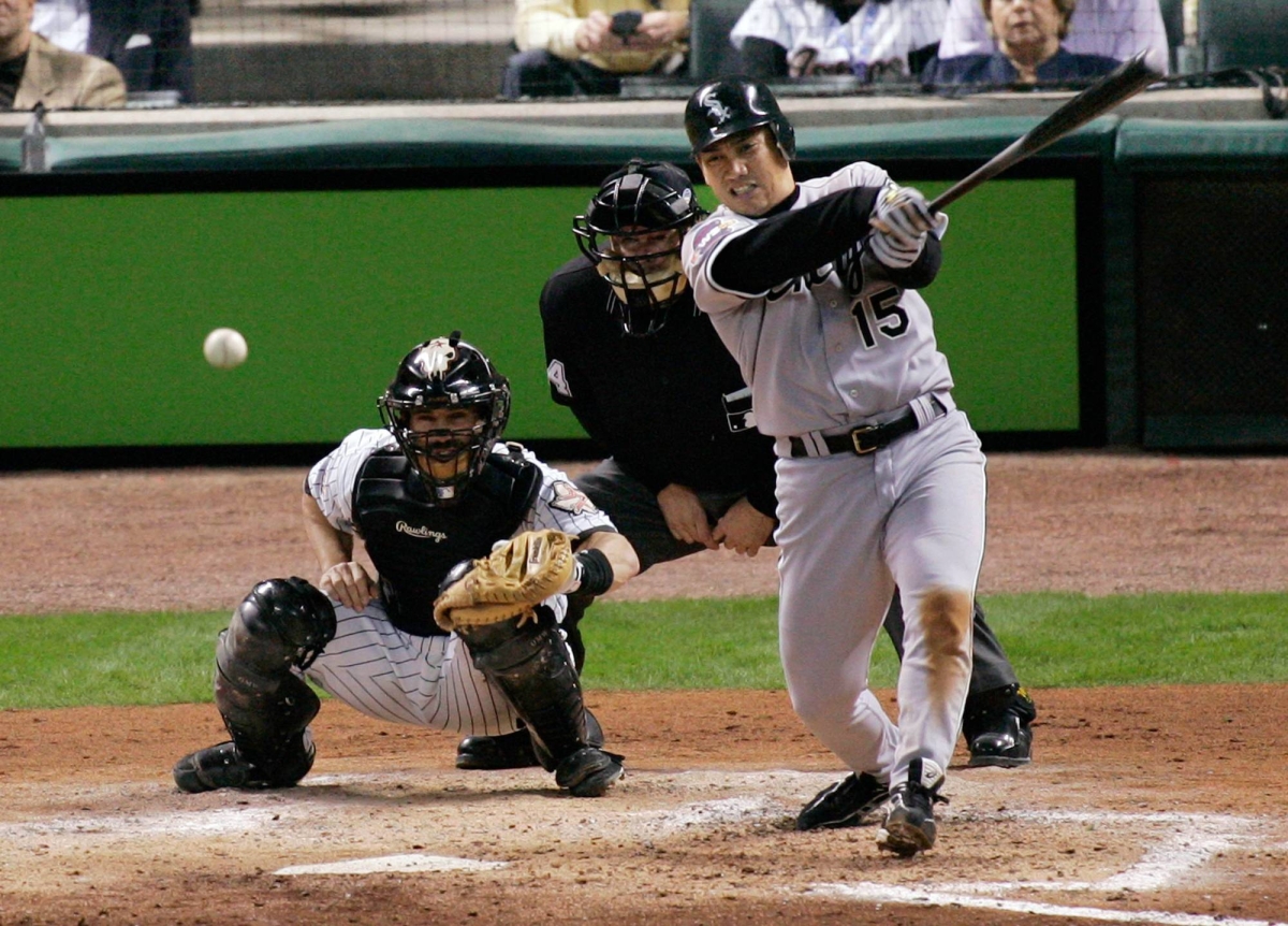In between Taguchi’s triumphs, pitchers Daisuke Matsuzaka and Hideki Okajima won with the 2007 Boston Red Sox, who swept the Colorado Rockies and infielder Kazuo Matsui.