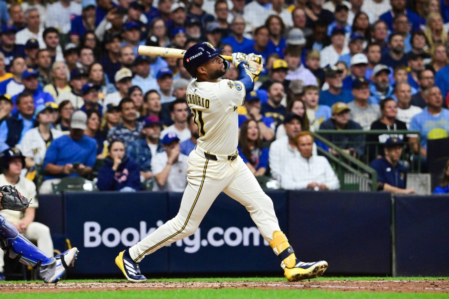 Chourio, who was questionable after leaving the first game with a hamstring issue, put the Brewers in front 7-3 with a two-out shot to center off Daniel Palencia in the fourth. Caleb Durbin, who was hit by a pitch an NL-high 24 times during the regular season, was plunked with one out and Joey Ortiz singled with two outs.